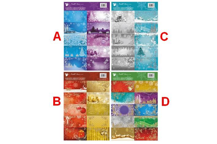 Samolepicí jmenovky na dárky se stříbrnou a zlatou ražbou 22,5x17cm 4 druhy