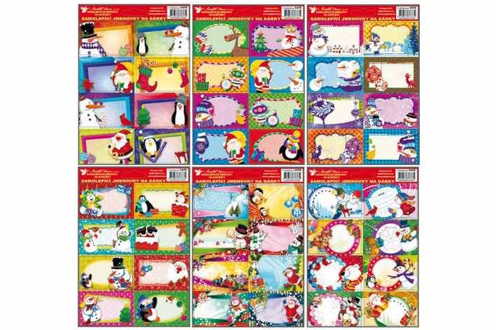 Samolepící jmenovky na dárky vánoční 3D s glitry 8ks 20x14cm
