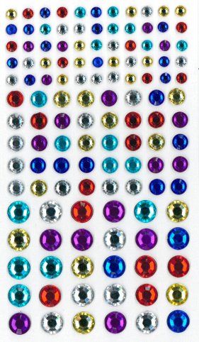 Nalepovací kamínky - plastové, mix bárev, velikost 4, 6, 8 mm.