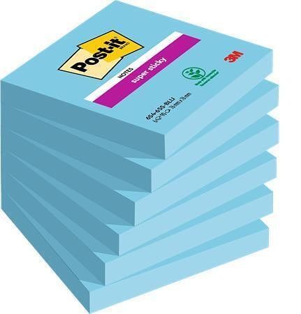 Samolepicí lístek "Super Sticky", modrá, 76 x 76 mm, 6 x 90 listů, 3M POSTIT 7100263845