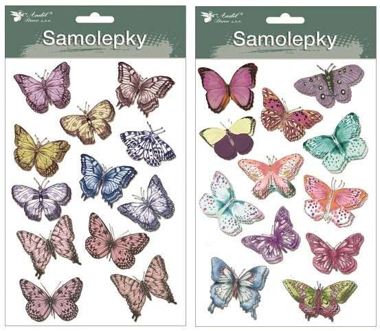 Samolepicí motýli dvouvrství s glitry 13x19 cm