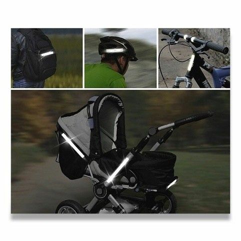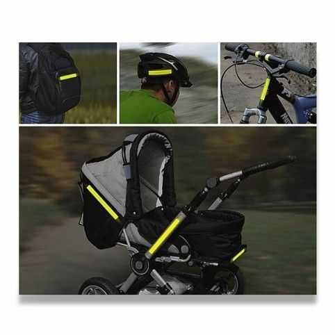 Výstražná rexlefní samolepicí páska pro zvýšení pasivní bezpečnosti. Ideální k nalepení na kočárek, kolo, dětskou tříkolku, školní brašnu, na helmu či jiný předmět. Dobrá viditelnost na velkou vzdálenost. Zejména za snížené viditelnosti či v šeru několikanásobně prodlužuje vzdálenost, na kterou lze objekt spatřit. Z pásky lze jednoduše vytvořit i více reflexních pruhů, stačí jen pásku nastříhat na jednotlivé kousky.