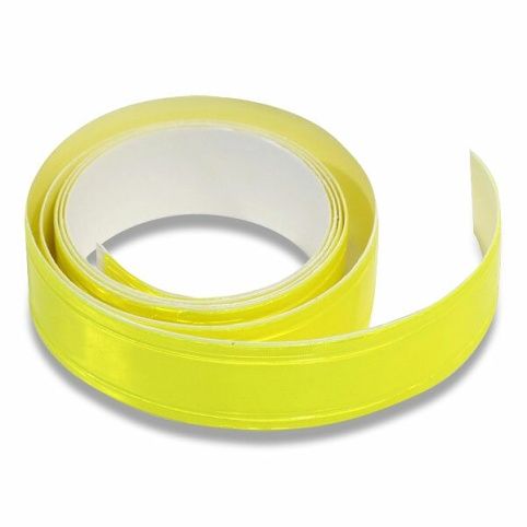 Výstražná rexlefní samolepicí páska pro zvýšení pasivní bezpečnosti. Ideální k nalepení na kočárek, kolo, dětskou tříkolku, školní brašnu, na helmu či jiný předmět. Dobrá viditelnost na velkou vzdálenost. Zejména za snížené viditelnosti či v šeru několikanásobně prodlužuje vzdálenost, na kterou lze objekt spatřit. Z pásky lze jednoduše vytvořit i více reflexních pruhů, stačí jen pásku nastříhat na jednotlivé kousky. Délka 90 cm, šířka 2 cm, žlutá nebo stříbrná,