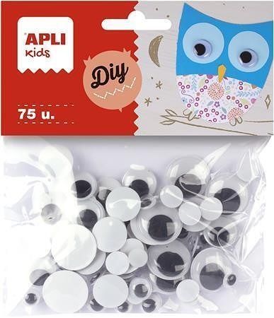 Kulaté pohyblivé oči v černé barvě. Oči s lepidlem na zadní straně, připravené k použití. Silná přilnavost na mnoha površích: papír, karton, pěna EVA, plast, keramika nebo sklo. Základní produkt do škol a dětských dílen, ideální pro doplnění na kresby, loutky či jiné ruční práce.