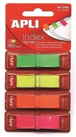Samolepicí záložky, 4 fluorescentní barvy, 160 ks, APLI