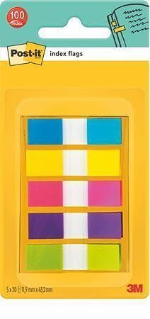 Samolepicí záložky, mix neonových barev, 12x43 mm, 5x20 listů, 3M POSTIT