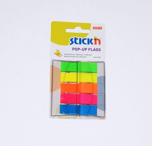Založka samolepicí Pop-up plastová Stick'n by Hopax, 45x12mm, neon mix, 5x40 lístků