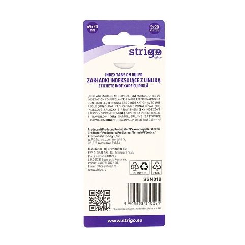 5 x 20 listků v několika barvách s pravítkem na blistru.