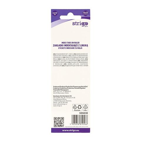 Samolepící záložky Strigo v 10 barvách s pravítkem na blistru.