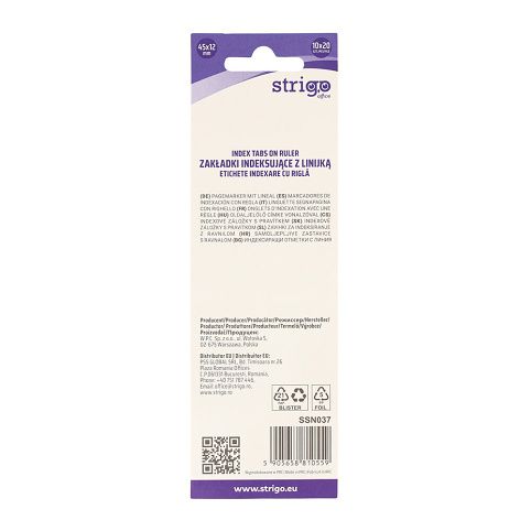 Samolepící záložky Strigo v 10 barvách s pravítkem na blistru.
