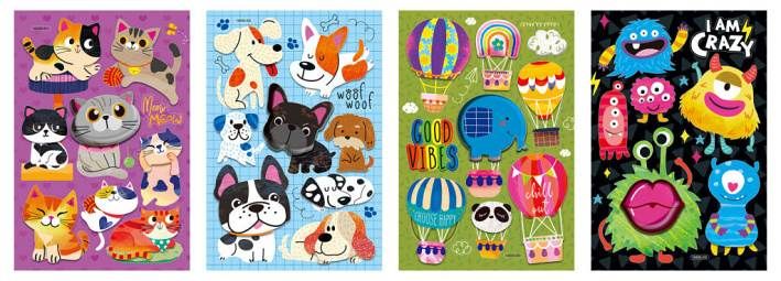 Barevné samolepky 3D Embellishments, celé balení obsahuje mix 4 vzorů. Balení 12 ks.