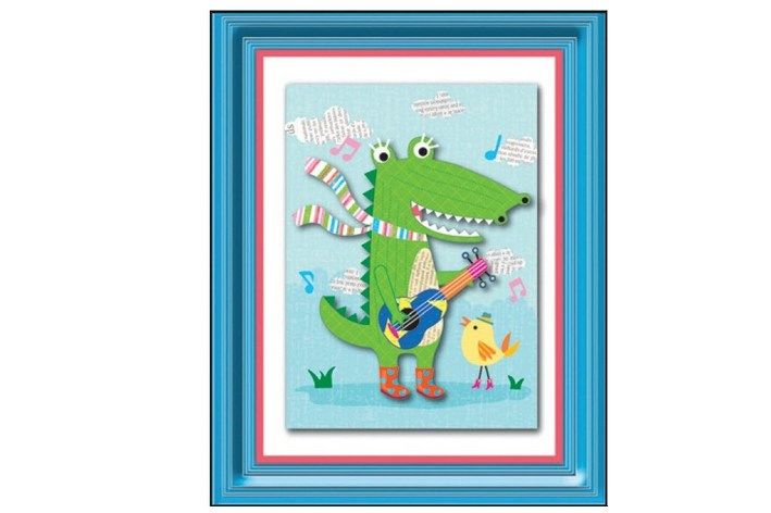 Samolepka 3D v rámečku krokodýl s kytarou 32x25cm