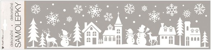 Samolepka bílá s glitry 15 x 64 cm městečko