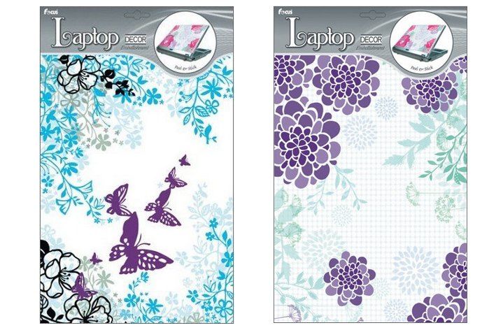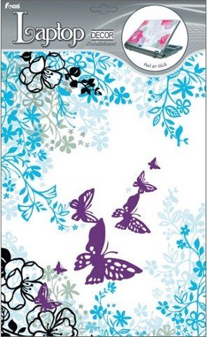 Samolepka na laptop s modrými květinami a fialovými motýli 39x25cm