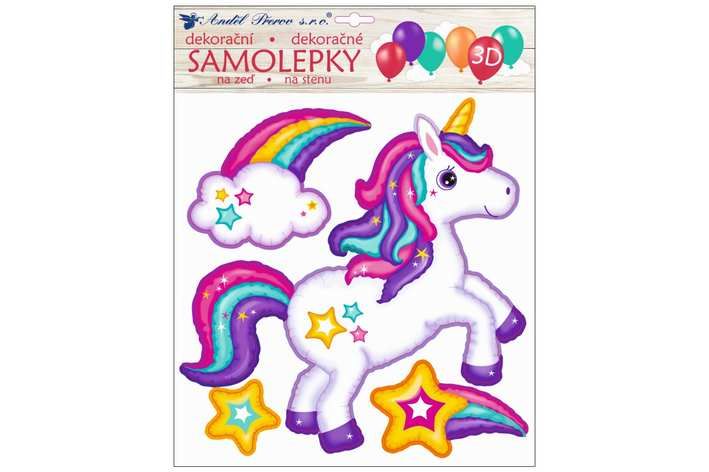 Samolepka na zeď 3D balónková jednorožec 30x30