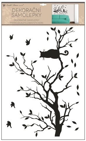 Pokojová samolepka černá větev s kočkou Přemýšlíte jak snadno a rychle ozdobit prázdnou zeď či jinou hladkou plochu? Použijte k tomu pokojovou samolepku! Použití: Samolepku opatrně sloupněte z podkladového papíru.Přilepte na vámi zvolený hladký a čistý povrch.Uhlaďte od středu ke krajům.