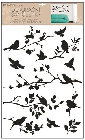 Pokojová samolepka větev s ptáčky Přemýšlíte jak snadno a rychle ozdobit prázdnou zeď či jinou hladkou plochu? Použijte k tomu pokojovou samolepku! Použití: Samolepku opatrně sloupněte z podkladového papíru.Přilepte na vámi zvolený hladký a čistý povrch.Uhlaďte od středu ke krajům.