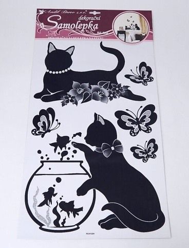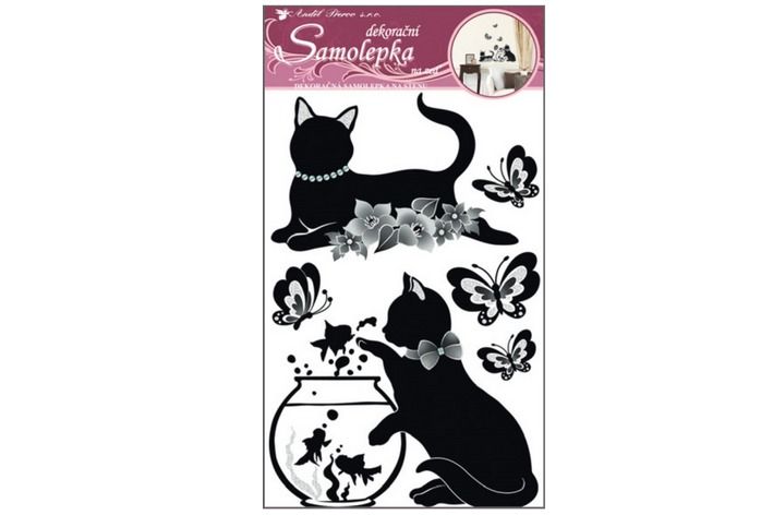Samolepka na zeď černé kočky s akváriem 50x32cm