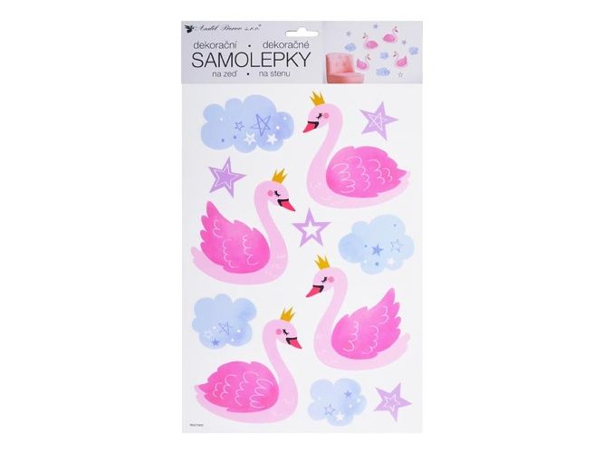 Dekorační samolepky na zeď - labutě Návod k použití: Opatrně sejměte samolepku z podkladového papíru. umístětě na zvolenou suchou a čistou plochu. Vyhlaďte od středu ke krajům.