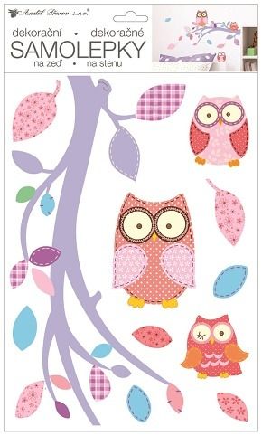 Samolepka na zeď sovy a větev 24 x 42 cm