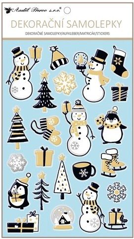 Samolepka plastická 14 x 25 cm, sněhuláci se zlatou a stříbrnou