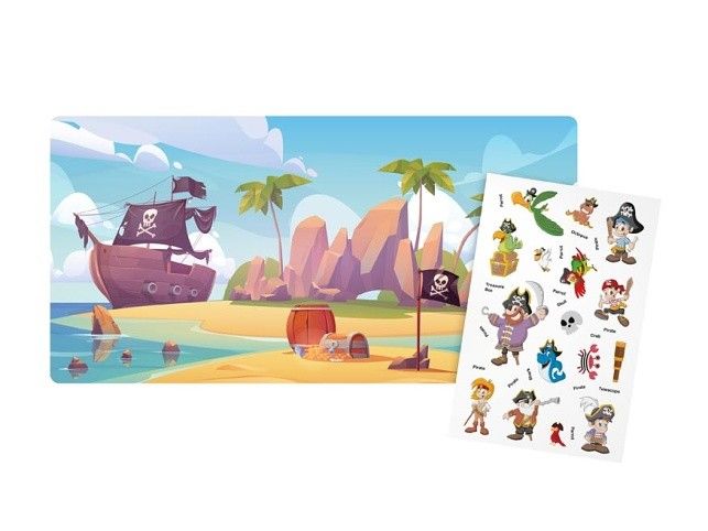 Připravte se na vzrušující plavbu po moři plném pokladů, odvážných pirátů a fantastických příběhů! Tato samolepková kniha Piráti vtáhne děti do světa lodí, map a skrytých truhlic plných zlata. Obsahuje 16 znovupoužitelných samolepek s motivy pravých pirátských hrdinů, pokladů, exotických zvířat a spousty dalších doplňků, které dodají každému příběhu ten správný šmrnc. Jedna strana knihy je věnována pečlivému umisťování samolepek do připravených obrysů, zatímco na druhé straně čeká tajemná pirátská scéna, kde mohou děti popustit uzdu své fantazii. Budou bránit poklad před nebezpečnou chobotnicí? Nebo objeví nový ostrov s truhlou plnou zlata? Je to jen na nich! Motiv: pirátský Rozměr: 120 x 180 mm VAROVÁNÍ: Nevhodné pro děti do 3 let. Nebezpečí vdechnutí a spolknutí malých částic. Uvedená cena je za 1 ks.