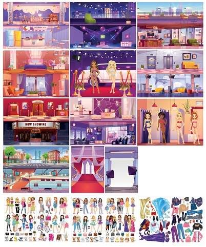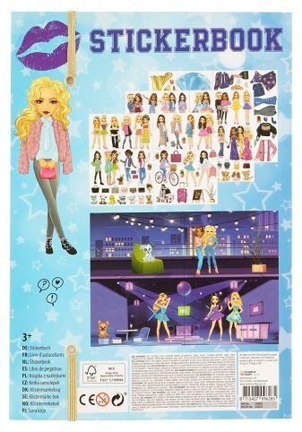 Kreativní set samolepková kniha obsahuje 12 pozadí/lokací, na které se libovolně lepí přiložené samolepky a tvoří se tak originální scéna