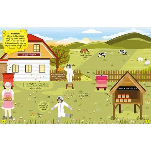 Samolepková knížka obsahuje 16 barevných stran a 8 stran samolepek k dolepení.