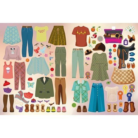 Samolepková knížka plná módy obsahuje 24 stran a více než 300 samolepek šatů, bot a doplňků.