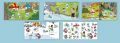 lesklá obálka + 9 lesklých stran pozadí + 2 strany znovupoužitelných samolepek, děti pomocí samolepek si sestavují obrázky, tím rozvíjí prostorové vnímáni a svou fantazii, znovupoužitelné samolepky umožní mnoho herních variant (nekonečnou zábavu).