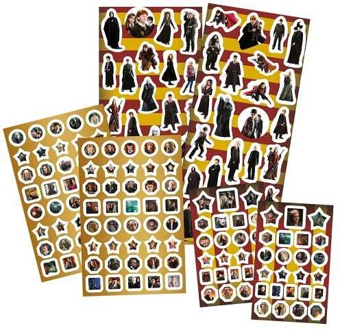 Set obsahuje téměř 500 různých druhů samolepek, blok (32 listů) ke psaní i malování a 12 voskovek. Tento velký samolepkový set obsahuje více než 500 samolepek s motivy oblíbených postav a scén z kouzelnického světa. Součástí balení je také blok s obálkou Harry Potter a sada 12 voskovek, se kterými si děti mohou vytvářet vlastní magické obrázky.