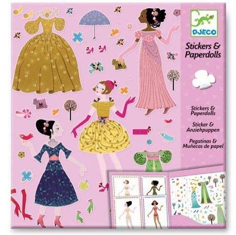 Samolepkový set pro holčičky s motivem oblékacích panenek. Oblékejte panenky do různých modelů šatů a doplňků pomocí připravených samolepek. Samolepky lze znovu sloupnout a nalepit.