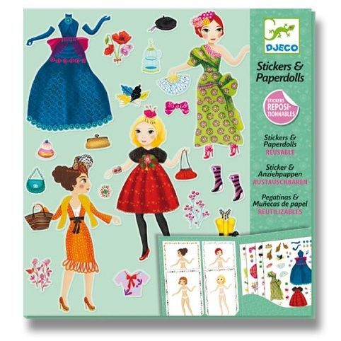 Samolepkový set pro holčičky s motivem oblékacích panenek. Oblékejte panenky do různých modelů šatů a doplňků pomocí připravených samolepek. Samolepky lze znovu sloupnout a nalepit.