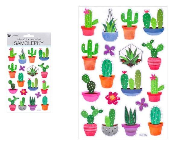 Samolepky - kaktusy plastické - vhodné jako dekorace do sešitu, bloku NÁVOD: 1. Odlepte nálepku z podkladu a zvolte vhodné místo k nalepení. 2. Lepivou stranu přitiskněte k povrchu, který je pevný, hladký, čistý a rovný. 3. Po nalepení důkladně vyhlaďte, odstraníte tím případné vzduchové mezery. UPOZORNĚNÍ: Není hračka, obal odstraňte z dosahu dětí. Používejte pod dohledem dospělé osoby. Uvedená cena je za 1 ks.