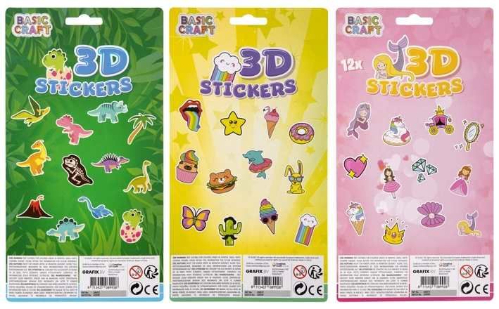 Samolepky 3D s třpytkami – balení obsahuje 12 ks 3D samolepek s třpytkami. Tři druhy.