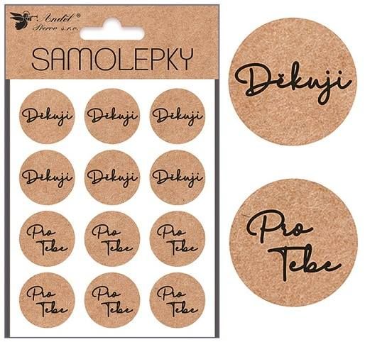 Samolepky Děkuji a Pro tebe 12 ks, průměr 3 cm, 11 x 18 cm