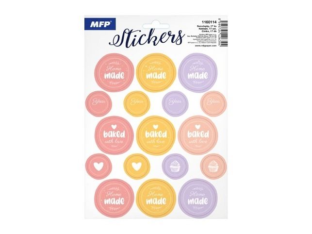 Když záleží i na maličkostech! Vylaďte své domácí výrobky s elegantní sadou samolepek v jemných pastelových tónech. Najdete na nich nápisy jako Home made, Baked with love, Yours, nebo symboly srdíček a cupcakes – skvěle se hodí pro označení domácího pečiva, zavařenin, dárkových balíčků či rukodělných výrobků. Díky různým velikostem se samolepky snadno přizpůsobí různým typům obalů. Některé obsahují prostor pro doplnění roku nebo osobního vzkazu. Dodejte svým domácím výrobkům osobní kouzlo – protože to, co je vytvořeno s láskou, si zaslouží i krásné balení. Počet samolepek: 17 ks Velikost archu: 162 × 230 mm Uvedená cena je za 1 aršík.