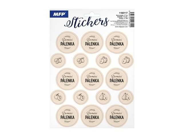 Tradiční chuť si zaslouží stylové označení! Samolepky „Domácí pálenka“ s decentní grafikou ovoce dodají vašim lahvím elegantní vzhled. V přírodních tónech a s motivy hrušek, švestek či jablek podtrhnou kvalitu vaší domácí výroby. Skvělé na dárky, rodinné zásoby i slavnostní lahve, které chcete předat s hrdostí. Počet samolepek: 17 ks Formát archu: 162 × 230 mm Uvedená cena je za 1 aršík.