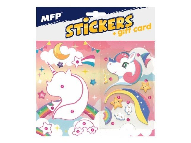 Pěnové samolepky. Poskládejte a nalepte si pomocí písmen celý obrázek. Zároveň je možné hotový obrázek odtrhnout a darovat ho jako přáníčko nebo jako jeho součást. Motiv: jednorožec, vesmír, dinosaurus, ovečka UPOZORNĚNÍ: Nevhodné pro děti do 3 let. Nebezpečí udušení. Malé části. Uvedená cena je za 1 ks.
