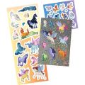 Set obsahuje list klasických papírových samolepek, list samolepek s fóliovým efektem a list samolepek s barevnými glitry.