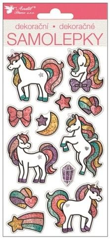 Samolepky jednorožci s glitry, 21 x 10 cm