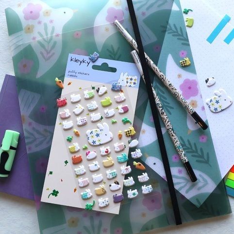Krásné a originální samolepky korejské značky KLEYKY se skvělé hodí k dekoraci np. diářů, kalendářů, planneru, telefonů, přáníček a jiných věci dle vlastní fantázie. Vyrobené jsou z vysoce kvalitních materiálů a tištěné jsou pomocí moderních technologií, díky kterým nám můžou zaručit světlostálost a živé barvy. Samolepky mají velikost 10 x 20 cm.
