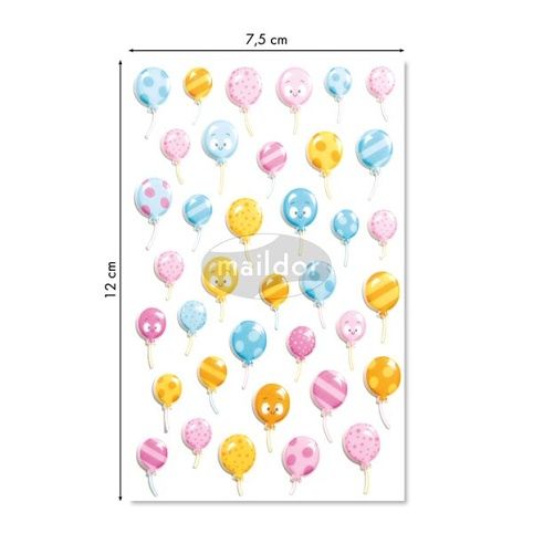 Samolepky Maildor 3D Cooky s motivy balónků a s efektem 3D. Balení obsahuje 1 arch s 37 samolepkami. Rozměr balení 7,5 x 12 cm.