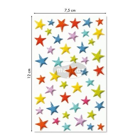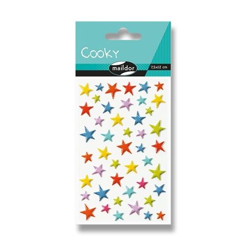 Samolepky Maildor 3D Cooky s motivy barevných hvězdiček a s efektem 3D. Balení obsahuje 1 arch s 46 samolepkami. Rozměr balení 7,5 x 12 cm.