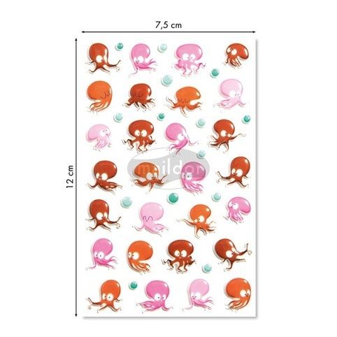 Samolepky Maildor 3D Cooky s motivy chobotnic a s efektem 3D. Balení obsahuje 1 arch s 42 samolepkami. Rozměr balení 7,5 x 12 cm.