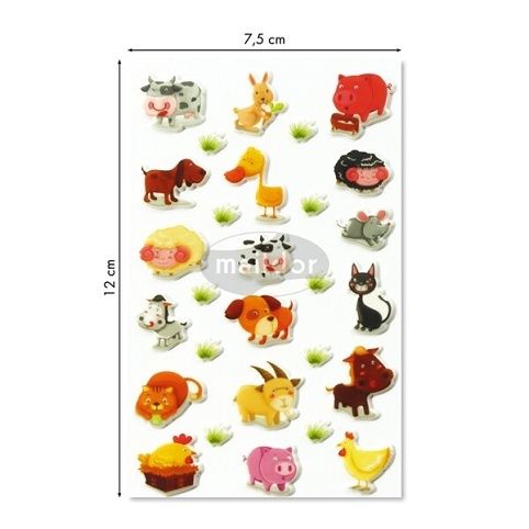 Samolepky Maildor 3D Cooky s motivy zvířátek z farmy a s efektem 3D. Balení obsahuje 1 arch s 28 samolepkami. Rozměr balení 7,5 x x12 cm.