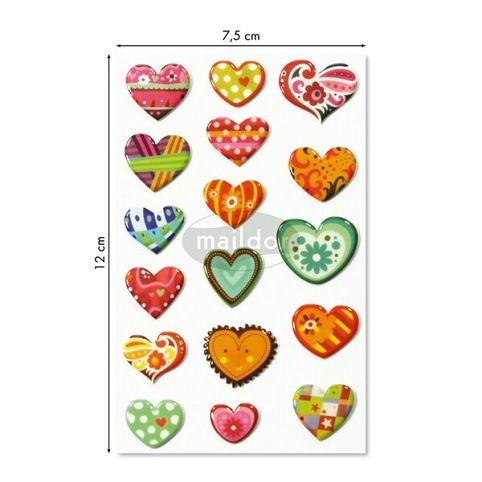Samolepky Maildor 3D Cooky s motivy různých srdíček a s efektem 3D. Balení obsahuje 1 arch s 17 samolepkami. Rozměr balení 7,5 x 12 cm.