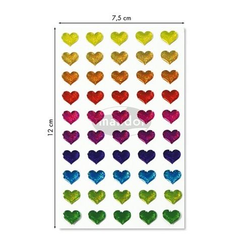 Samolepky Maildor 3D Cooky s motivy různě barevných srdíček a s efektem 3D. Balení obsahuje 1 arch s 50 samolepkami. Rozměr balení 7,5 x 12 cm.
