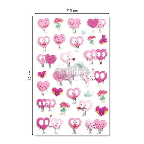 Samolepky Maildor 3D Cooky s motivy zamilovaných srdíček a s efektem 3D. Balení obsahuje 1 arch s 29 samolepkami. Rozměr balení 7,5 x 12 cm.