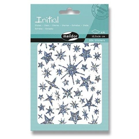 Samolepky Maildor Inital Holographic menší velikosti ve tvaru hvězdy s holografickým efektem. Balení obsahuje 4 listy, 2 motivy po 2 ks. Samolepky lze sloupnout a znovu nalepit. Rozměry balení: 10,5 x 16 cm.